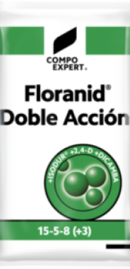 Floranid Doble Acción es un exclusivo producto 2 en 1 que aporta al césped en una sola aplicación un abono de liberación lenta y dos eficaces y selectivos herbicidas, satisfaciendo así todas sus exigencias nutritivas y protegiéndolo a la vez de las malas hierbas.